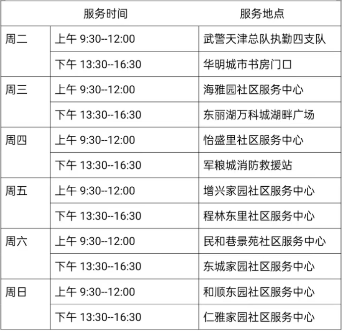 7月25日—7月30日东丽区图书馆流动服务车服务时间地点公布如下。社区、单位需要服务车上门服务请与杜俊老师联系,联系电话:18522291388。