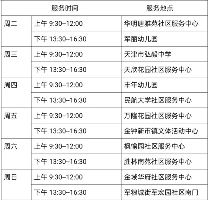 10月24日—10月29日东丽区图书馆流动服务车服务时间地点公布如下。社区、单位需要服务车上门服务请与杜俊老师联系,联系电话:18522291388。