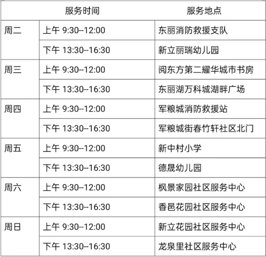 11月7日—11月12日东丽区图书馆流动服务车服务时间地点公布如下。社区、单位需要服务车上门服务请与杜俊老师联系,联系电话:18522291388。