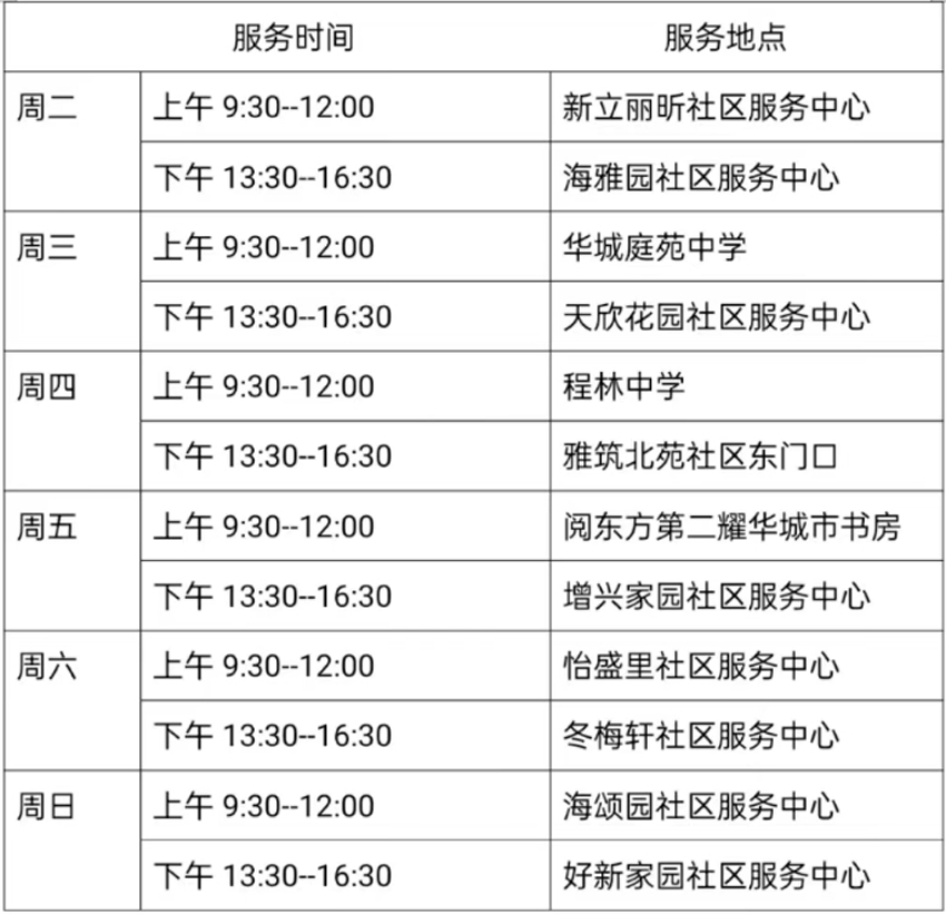 11月28日—12月3日东丽区图书馆流动服务车服务时间地点公布如下。社区、单位需要服务车上门服务请与杜俊老师联系,联系电话:18522291388。