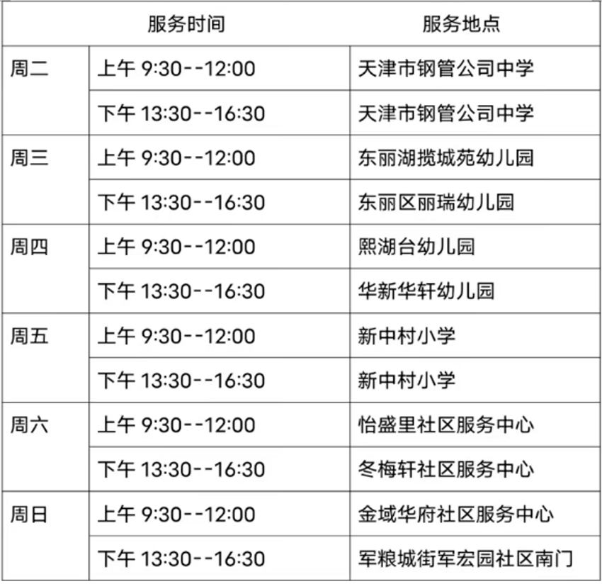 4月9日—4月14日东丽区图书馆流动服务车服务时间地点公布如下。社区、单位需要服务车上门服务请与杜俊老师联系,联系电话:18522291388。