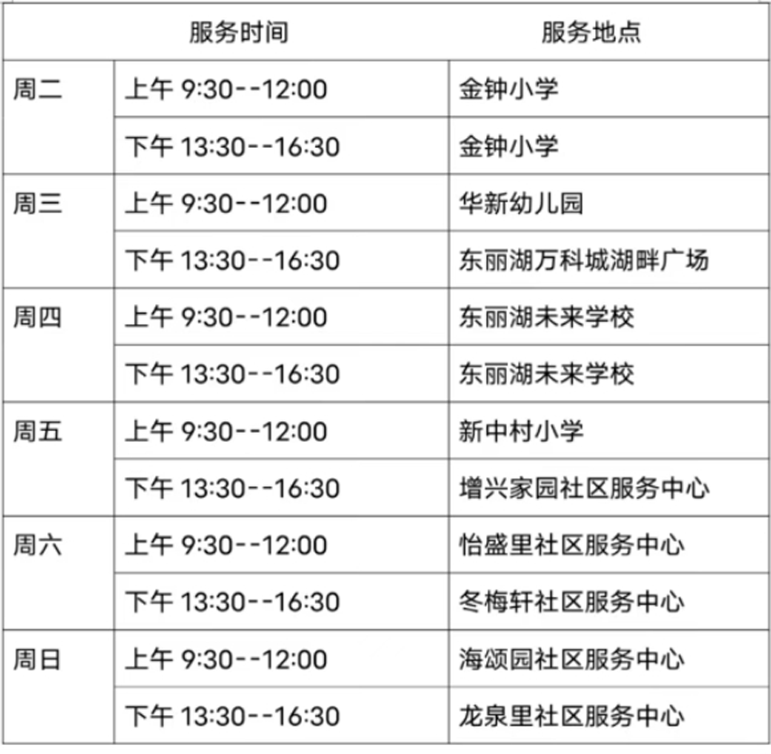 6月11日—6月16日东丽区图书馆流动服务车服务时间地点公布如下。社区、单位需要服务车上门服务请与杜俊老师联系,联系电话:18522291388。