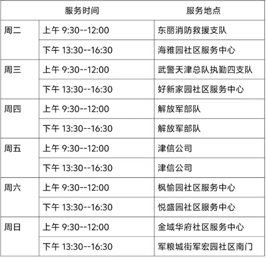 7月2日—7月7日东丽区图书馆流动服务车服务时间地点公布如下。社区、单位需要服务车上门服务请与杜俊老师联系,联系电话:18522291388。
