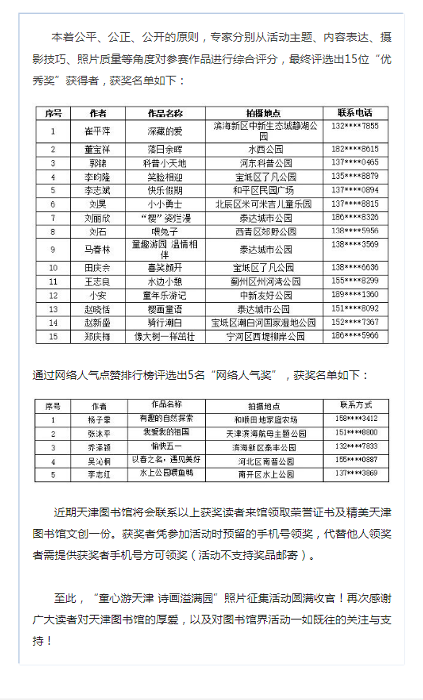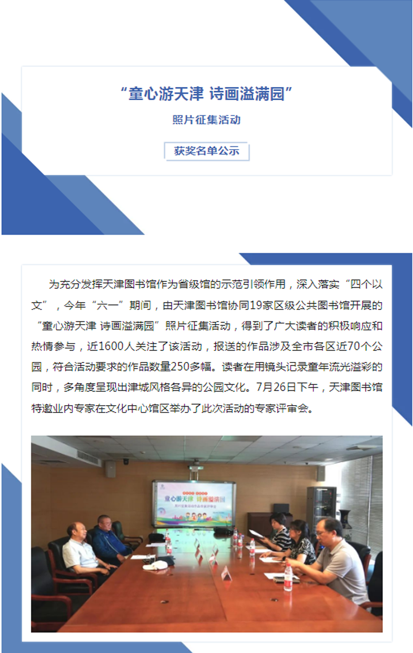 【领奖通知】| 津彩夏日 书影随行——“童心游天津 诗画溢满园”照片征集活动获奖名单公示