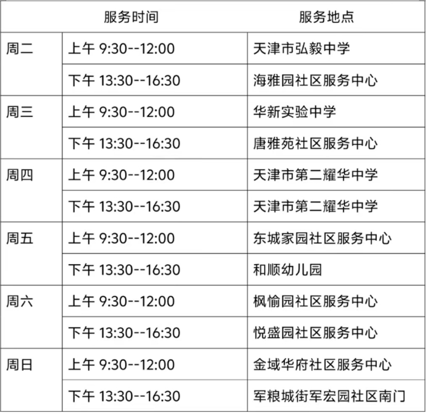 9月24日—9月29日东丽区图书馆流动服务车服务时间地点公布如下。社区、单位需要服务车上门服务请与杜俊老师联系,联系电话:18522291388。
