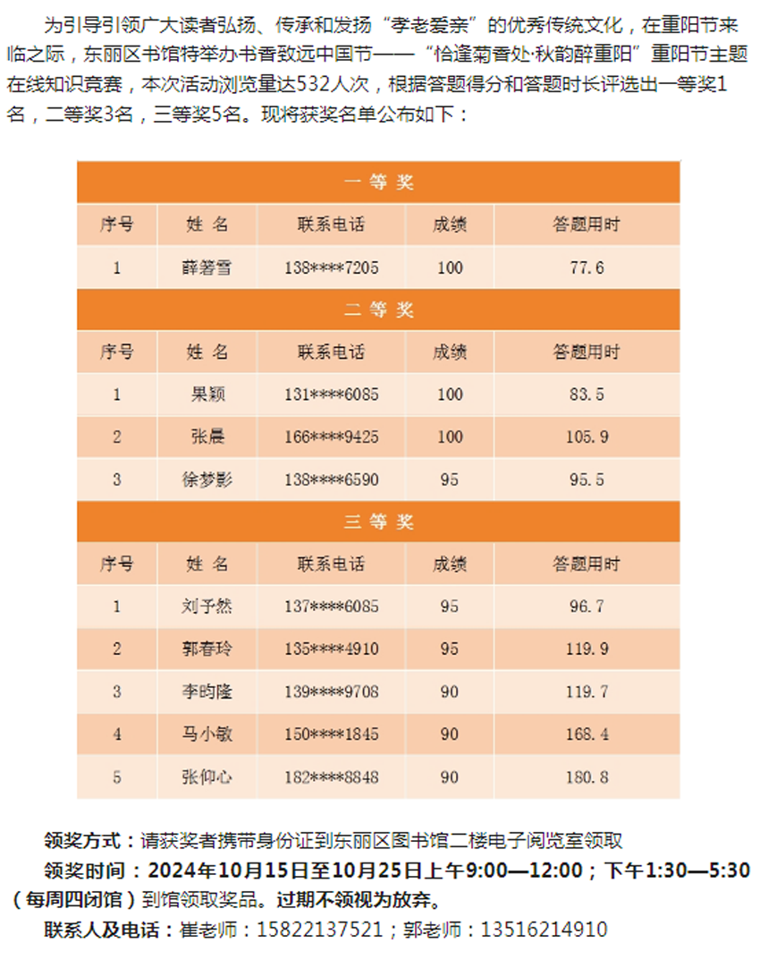 【领奖通知】| 书香致远中国节——“恰逢菊香处·秋韵醉重阳”重阳节主题在线知识竞赛名单揭晓
