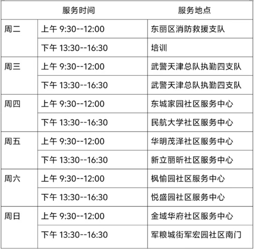 1月14日—1月19日东丽区图书馆流动服务车服务时间地点公布如下。社区、单位需要服务车上门服务请与杜俊老师联系,联系电话:18522291388。