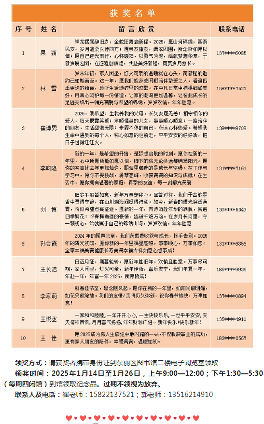 【领奖通知】| “新岁启封,共同迈进2025年”贺新年在线留言活动获奖名单揭晓