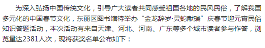 【领奖通知】| 书香致远中国节——“金龙辞岁·灵蛇献瑞”庆新春迎元宵民俗知识答题获奖通知