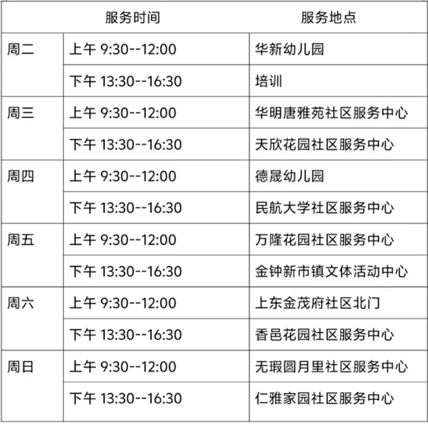 3月4日—3月9日东丽区图书馆流动服务车服务时间地点公布如下。社区、单位需要服务车上门服务请与杜俊老师联系,联系电话:18522291388。