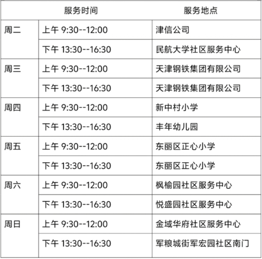 5月6日—5月11日东丽区图书馆流动服务车服务时间地点公布如下。社区、单位需要服务车上门服务请与杜俊老师联系,联系电话:18522291388。