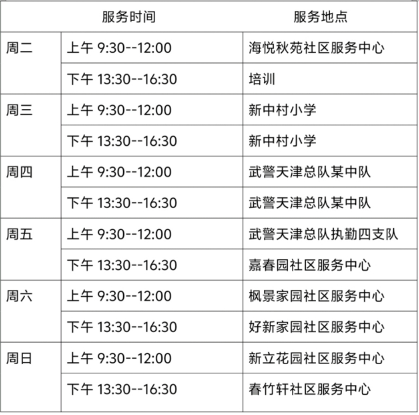 6月17日—6月22日东丽区图书馆流动服务车服务时间地点公布如下。社区、单位需要服务车上门服务请与杜俊老师联系,联系电话:18522291388。