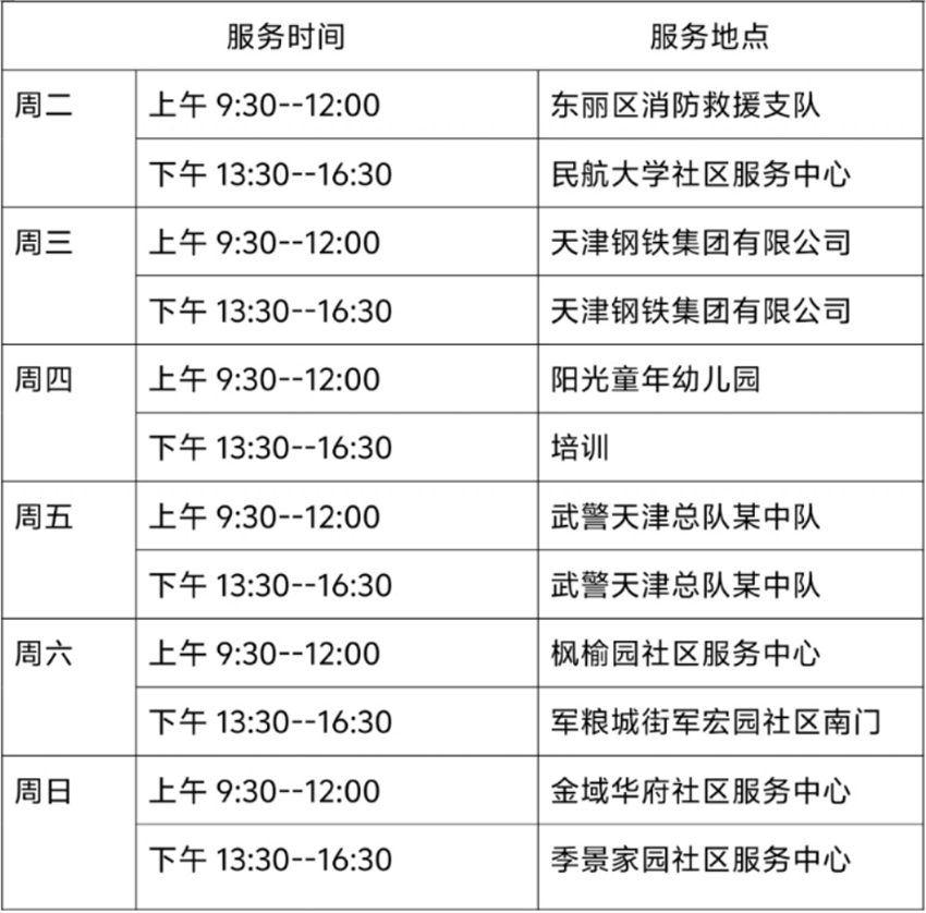 7月1日—7月6日东丽区图书馆流动服务车服务时间地点公布如下。社区、单位需要服务车上门服务请与杜俊老师联系,联系电话:18522291388。