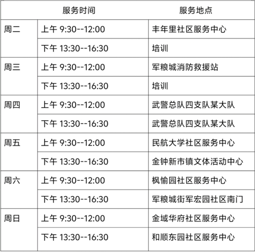 7月29日—8月3日东丽区图书馆流动服务车服务时间地点公布如下。社区、单位需要服务车上门服务请与杜俊老师联系,联系电话:18522291388。