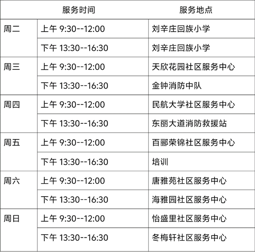 9月30日—10月5日东丽区图书馆流动服务车服务时间地点公布如下。社区、单位需要服务车上门服务请与杜俊老师联系,联系电话:18522291388。