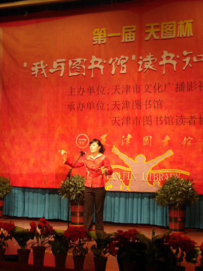 在世界读书日期间,为了发动更多读者及图书馆工作人员融入到读书活动中来,共同体验读书的乐趣、图书馆工作的意义,天津图书馆联合19个区县图书馆共同开展了读书知识竞赛活动。活动分为知识竞赛和作品展示两部分,我区图书馆在全区进行了初赛,选拔优秀选手,组成由区图书馆工作人员和读者参加的东丽图书馆代表队,并创作了快板《图书馆之春》参加了市级决赛。