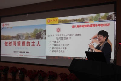 2016年3月7日下午第七节,高一年级全体学生在年级组带领下聚集演播厅,有幸聆听了北京大学三宽教育科学研究院情商教育研究室的主任、中国关工委教育发展中心家长教育学院讲师团的讲师高宝月老师“做时间的主人—如何进行有效时间管理”的讲座,一同莅临的还有天津地区负责人李津夏老师。