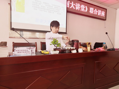 讲座中,周老师详细讲解了我国二十四节气的来历、春分饮食、春季慢性病防治等相关知识,揭示了顺应二十四节气的养生奥秘,并教授社区居民奉茶的礼仪。