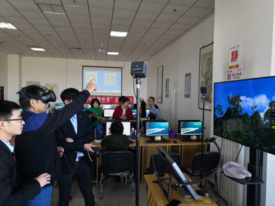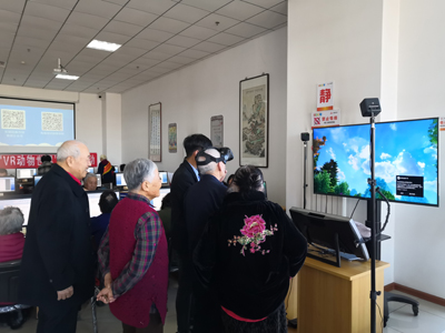 东丽区图书馆中老年“零基础”公益电脑培训班自2013年开办以来,已经成功地举办了11期电脑培训,结业的学员大多开始了全新的互联网生活。随着VR(虚拟现实)概念不断被深化,图书馆“零基础”电脑培训玩出新花样。VR技术是目前的一大科技热点,不过,前卫科技可不仅仅属于年轻人。开班第一课,图书馆携手上业科技为60位老年学员带来了新奇的VR体验。首先工作人员用浅显易懂的语言,配合轻快简明的视频向学员们讲解了什么是VR,VR能够给我们带来什么改变,让老年人对VR有了一个简单的认识。带上VR头显,老人们仿佛穿越到了真实的动物世界,狂野非洲、迷人欧亚、壮丽北美……瞬间活生生呈现在眼前。在体验的间隙,工作人员还带领老人们做护眼操,交流体验的感受。老人们纷纷表示,在体验过程中并未感到眩晕,对头显中呈现的绚丽的画面和这种新奇的“旅行”十分满意,甚至希望在之后的活动中可以体验一下VR游戏的乐趣。
