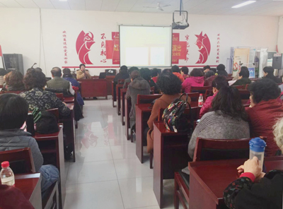 卞老师有着丰富的中医临床经验,讲座中,卞老师从中医的基本知识出发,为社区居民介绍了简便易学、效果明显的养生强身穴位,并通过示范,帮助大家学会穴位保健。