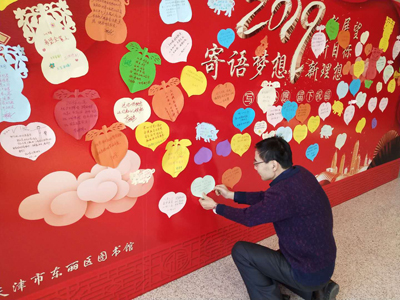 节日期间,热闹喜庆的红色心愿墙上一片片贴纸,如各色花瓣,满载着读者朋友们的美好祝福尽情绽放,吸引了众多读者纷纷驻足观看、合影,并情不自禁亲手为之再添一抹色彩。大家都表示这个心愿墙活动太有意义了,希望能延续下去。