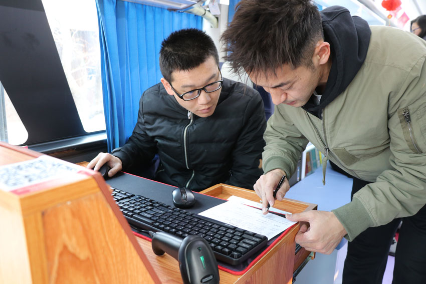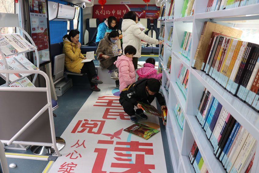 1月22日上午,东丽区图书馆基层服务点流动服务车载着丰富的文献资源亮相丰年街民和巷,车上采用无线上网技术实现与天津图书馆、东丽区图书馆、“阅东方”24小时城市书房的数据互联互通,达到四级通借通还。