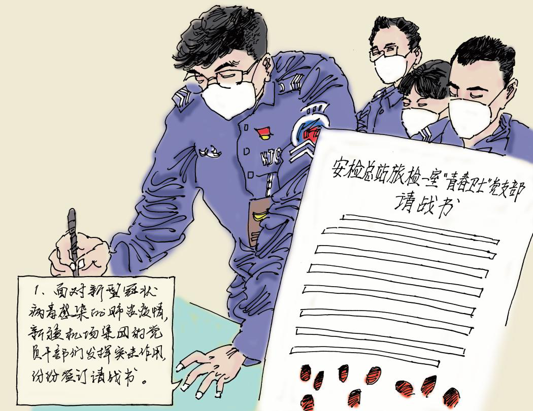 面对新型冠状病毒感染的肺炎疫情,新疆机场集团的党员干部们发挥突击作用,纷纷签订请战书。