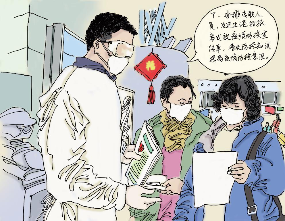 安排专职人员,为进出港的旅客发放疫情防控宣传单。普及防控知识,提高疫情防控意识。