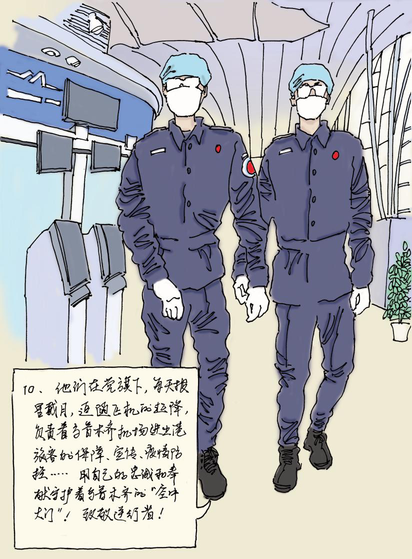 今天为大家带来“众志成城 抗击疫情”主题连环画创作推广公益行的系列连环画作品——《众志成城心向党》(编文、绘画:张立柱)。 众志成城心向党,抗击疫情勇担当。新冠疫情发生以来,新疆乌鲁木齐机场坚守旅客运输一线,全力保障旅客安全出行,党员干部召之即来,来之能战,坚定信心,精准施策,让党旗在防控疫情斗争的一线高高飘扬。