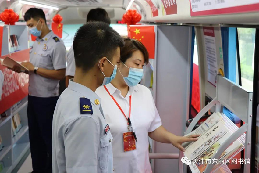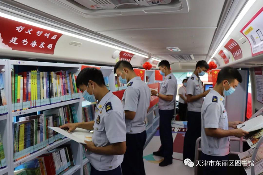 东丽区图书馆流动图书车作为图书馆总分馆建设的一部分,每年下基层600次,流动服务车将开进社区、部队、企业、机关、学校,助推书香东丽建设。