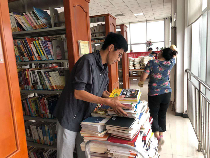 9月23日,耀华滨海学校杨富军老师、王玉红老师与学生卞佳骏、邓崇霄来到区总馆,精挑细选各类图书2065册。区总馆工作人员紧锣密鼓,当天完成了图书馆藏地点变更、打捆、装箱等工作。