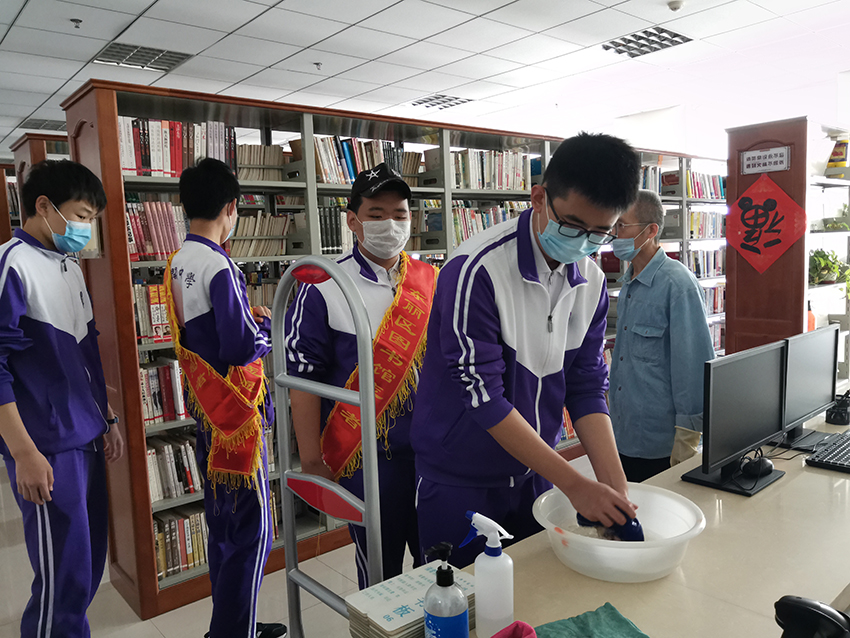 中秋国庆“双节”期间,天津市南开中学的14名志愿者在学校老师的带领下来到东丽区图书馆开展志愿服务活动。