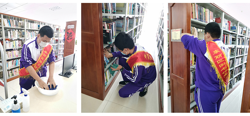 他们穿梭在图书馆的各个角落,清洁卫生、整理和归位图书、接待读者、指导读者们使用自助图书借阅机……他们忙碌的身影成为图书馆里一道靓丽的风景线。