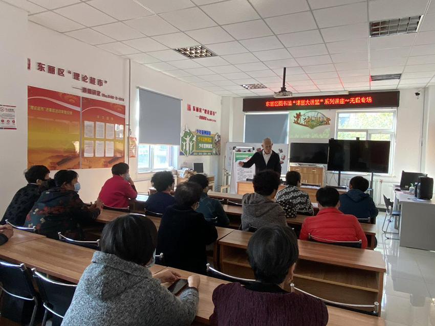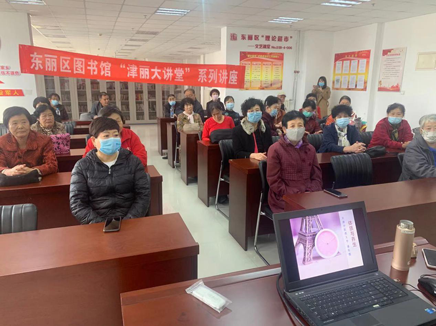 东丽区图书馆《津丽大讲堂》联合天津市社科联《理论超市》、天津图书馆《海津讲坛》特邀天津公安警官职业学院心理学教授刘援朝老师、天津中医药大学教授袁红霞老师、天津医科大学教授史宝欣老师分别于11月4日、11月6日在华盛里社区、军秀园社区、无瑕花园社区进行了题为《老年人角色变迁与自我调适》、《“全民健康”话养生》、《新冠肺炎居家防护与心理自助》的讲座,社区居民参加了讲座。
