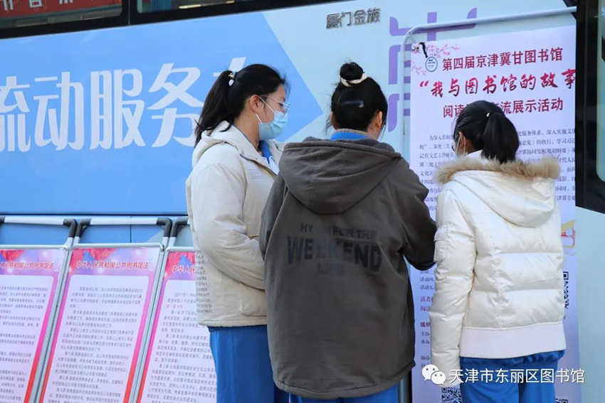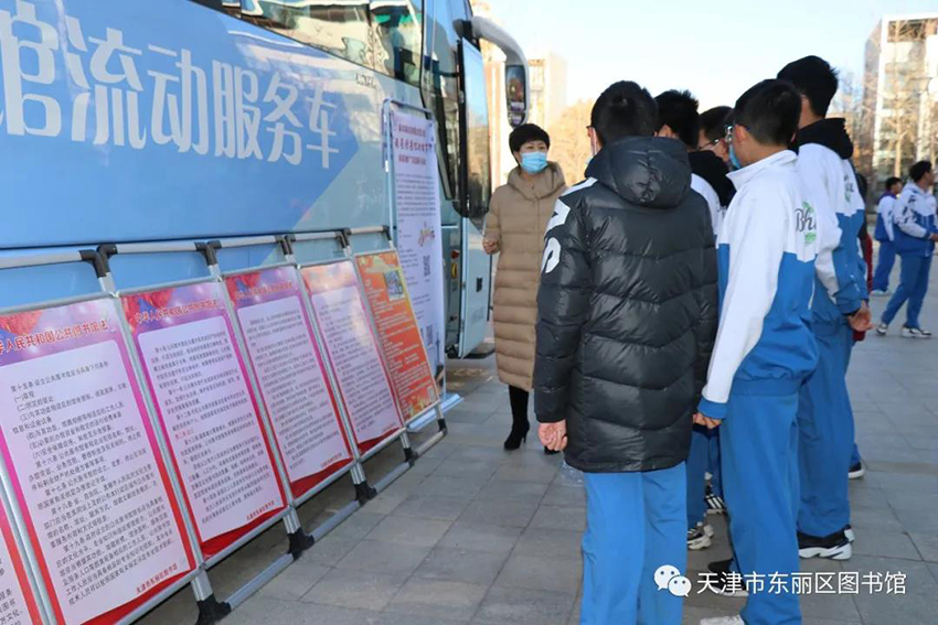 12月4日上午,伴随着冬日的暖阳,东丽区图书馆流动服务车开进天津耀华滨海学校校园,开始了今年疫情防控常态化以来的第175次巡回服务。今天和东丽区图书馆流动服务车一起进校园的还有天津图书馆流动服务车,东丽区图书馆联合天津图书馆,不仅把公共图书馆优质图书资源送到师生身边,还将丰富多彩的阅读推广活动送进校园。