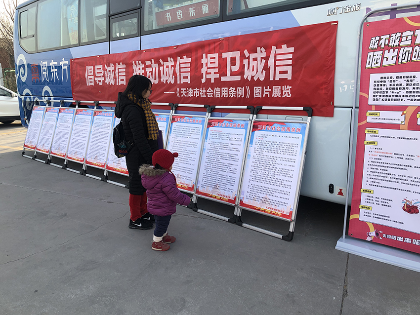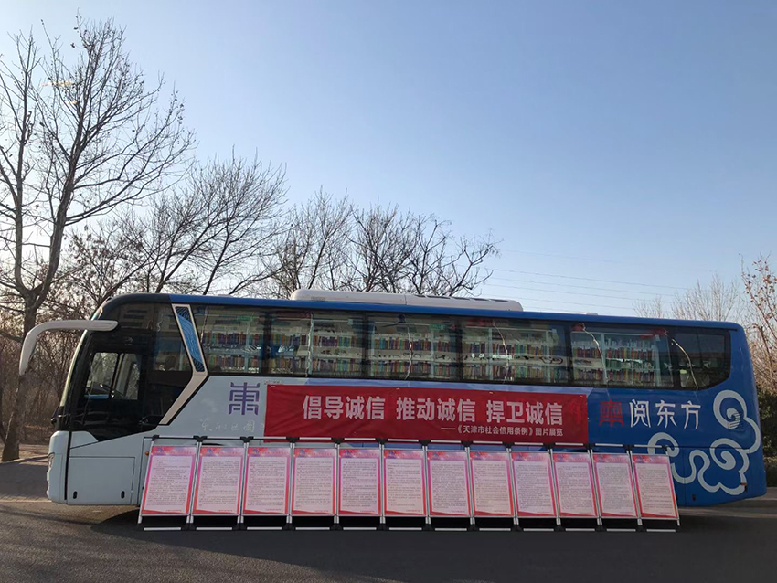 为深入贯彻落实《天津市社会信用条例》、《东丽区关于<天津市社会信用条例>宣传方案》,东丽区图书馆积极开展宣传活动,展出《天津市社会信用条例》内容的展板12张,并利用流动图书车在东丽区进行流动展览,众多读者驻足阅读学习,营造出学条列、用条列、守条列的浓厚社会氛围。