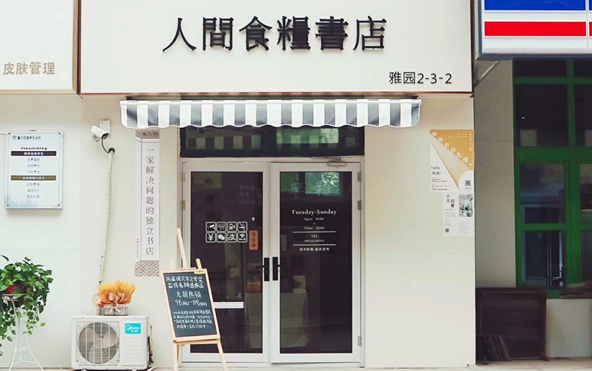 人间食粮书店的名字,取自纪德的散文体小说《人间食粮》,纪德写作这本书的时候,正值青年,他遭遇到了精神困顿,他在这本书里希望如他一般的青年人,从书本"返回"到大地上。书店主人高贵兵也同样希望青年读者能够持有“要吃饭,也要阅读”的态度。书店除了图书及文创产品,还在专门区域摆放了五常大米、小米、黄豆这些真正的食粮售卖,与墙上“要吃饭,也要阅读”的标语遥相呼应。