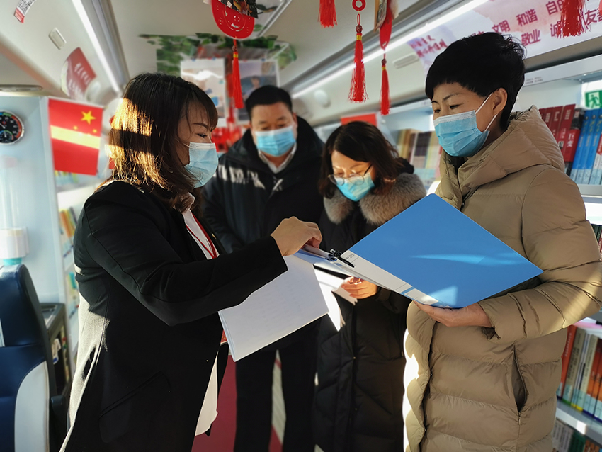 在检查与培训中,馆领导提出:在过去的几个月里,服务车运营取得了显著的成绩,新的一年里,在将新冠肺炎疫情防控要求精准落实的前提下,要有条不紊按计划推进全年工作。春节期间,图书车在深入社区、企业推广阅读的过程中,要多面向留津异地过年的群众,为他们提供充足的精神食粮,让他们度过一个有书相伴的,欢乐、祥和、安宁的新春佳节。