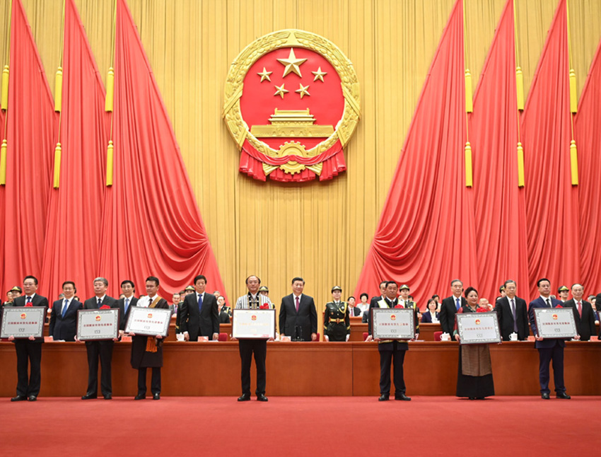 李克强主持大会,汪洋宣读表彰决定,栗战书、王沪宁、赵乐际、韩正、王岐山出席。