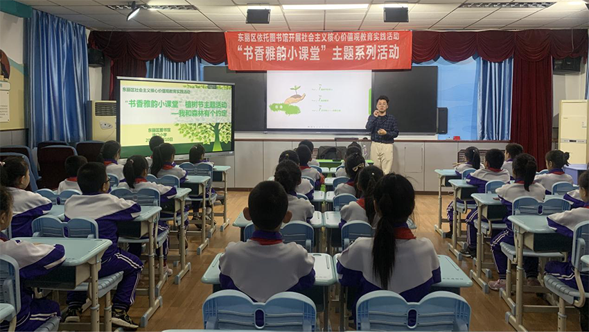 阳春三月,草长莺飞。伴随着徐徐春风,植树节悄然而至。3月10日,东丽区图书馆“书香雅韵小课堂”主题活动——“我和森林有个约定”走进津门小学,与师生共赴这一场初春的约会,种下一个“小森林”,收获一片绿荫。