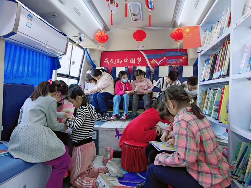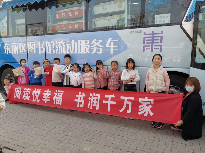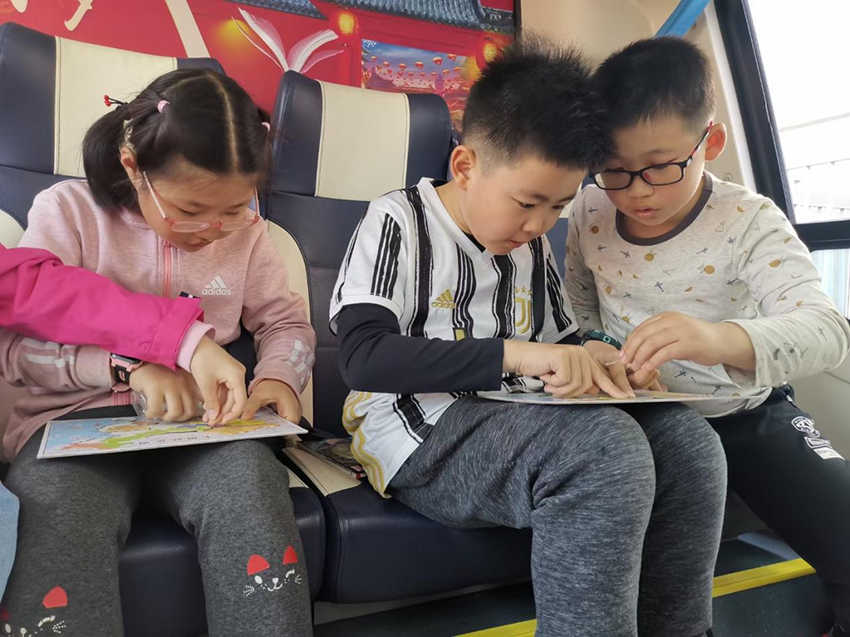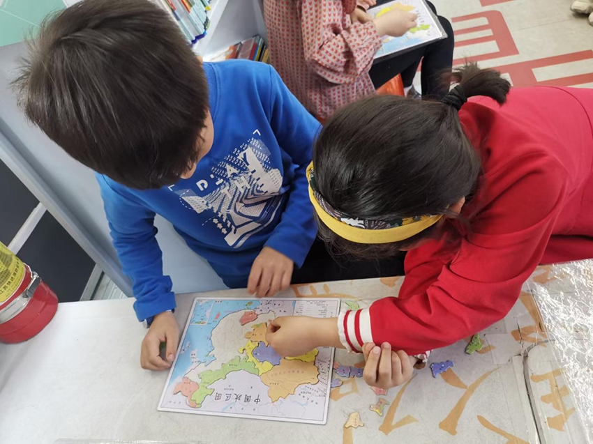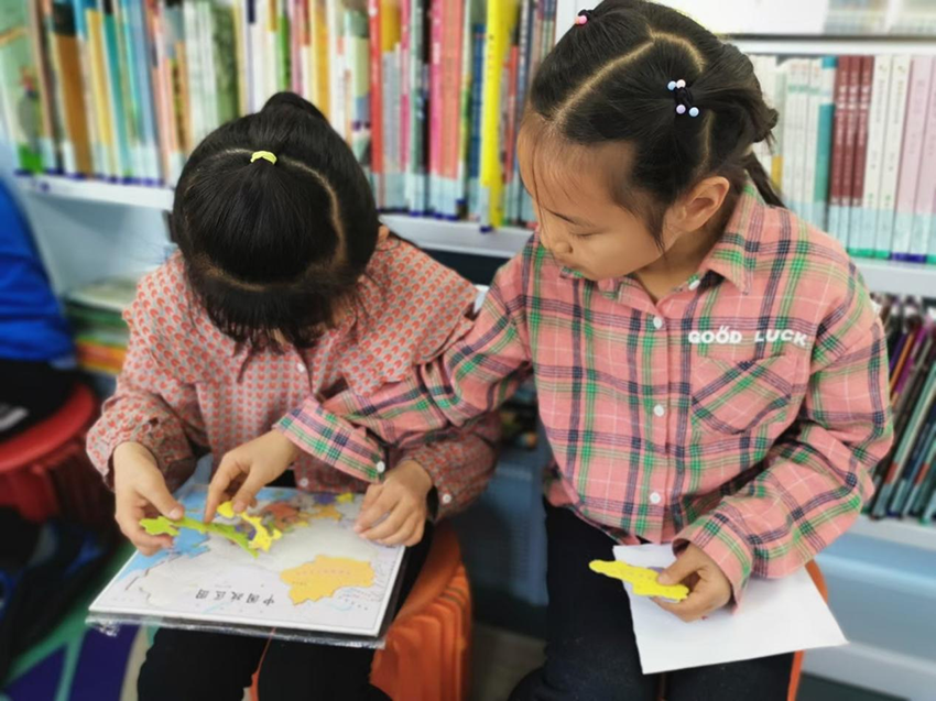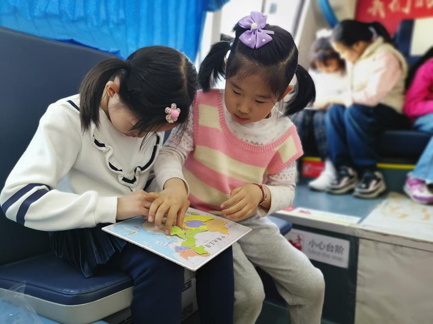 东丽区图书馆流动服务车开进北大附中天津东丽湖学校送文化服务进校园。同学们利用中午休息的时间纷纷跑到图书车借书并参加拼图活动,小伙伴们聚在一起,两人一组,在规定的时间内最快完成拼图作品的小组夺得冠军,并和大家分享合作经验。