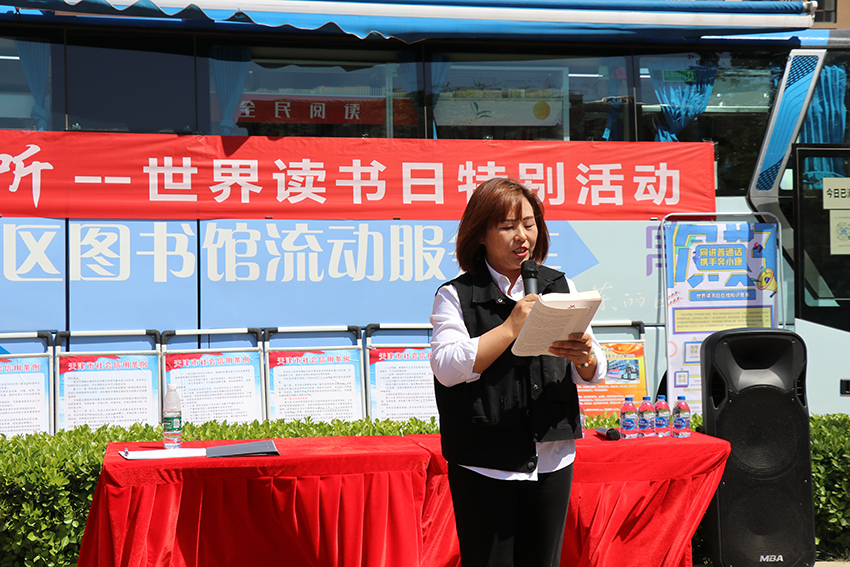 在春风花草香的四月,在第26个世界读书日即将到来之际,4月18日上午,东丽区图书馆流动图书车开进金域华府社区,想把我读给你听——世界读书日特别活动在这里举行。