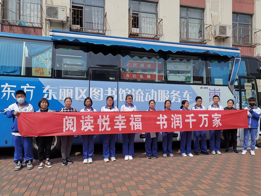 最是书香能致远。东丽区图书馆流动服务车用书香献礼建党百年。