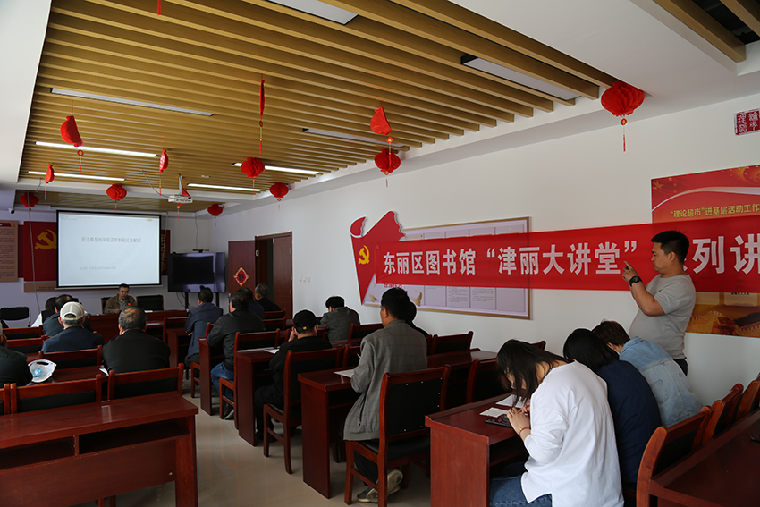 为深入学习贯彻习近平总书记关于全面依法治国的重要论述、特别是关于民法典的重要指示精神,深入开展民法典普法工作,阐释民法典所蕴含的社会主义法治精神,4月29日,东丽区图书馆特别邀请天津社会科学院副研究员刘中流老师来到东丽区新立街道秀欣园党群服务中心,为大家带来一场以“民法典里的年龄及其权利义务解读”为主题的“津丽大讲堂”文化公益讲座。