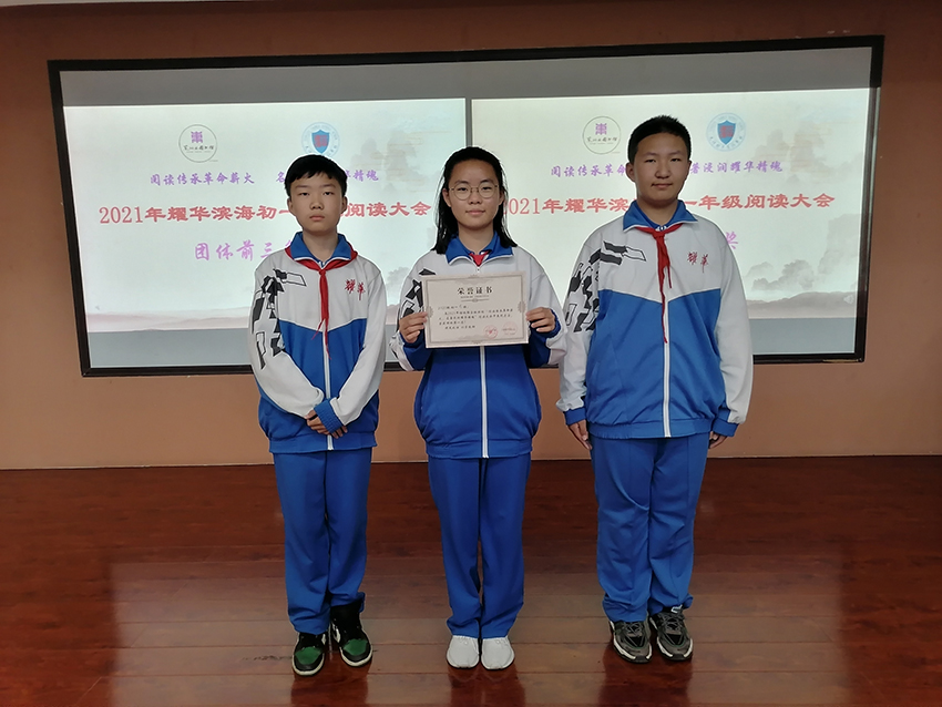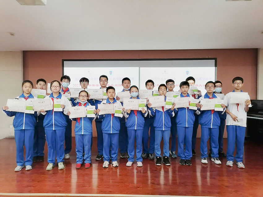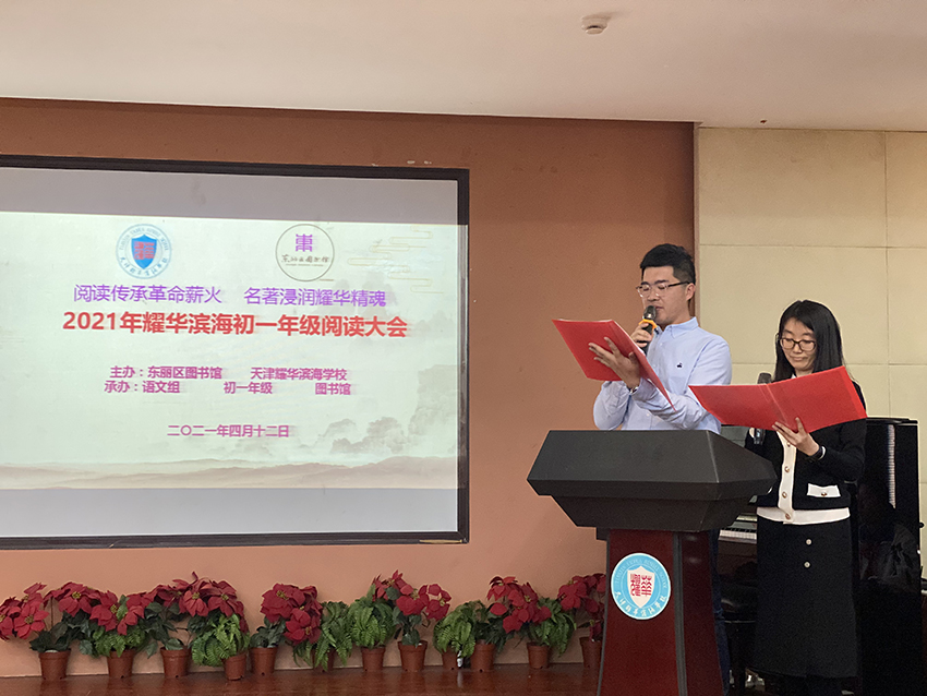 为深入贯彻落实四史学习精神,迎接中国共产党成立100周年,在世界读书日之际,东丽区图书馆与耀华滨海学校联合主办“阅读传承革命薪火 名著浸润耀华精魂”阅读大会活动,初一年级组、语文教研组和学校图书馆共同承办。