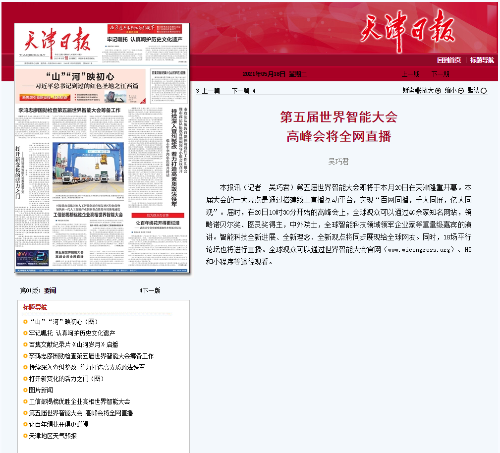 第五届世界智能大会 高峰会将全网直播