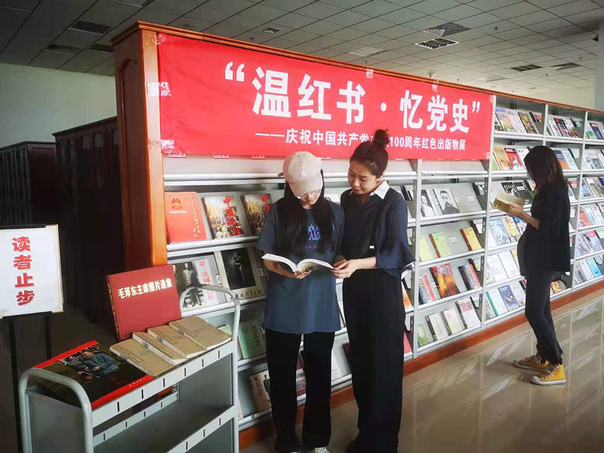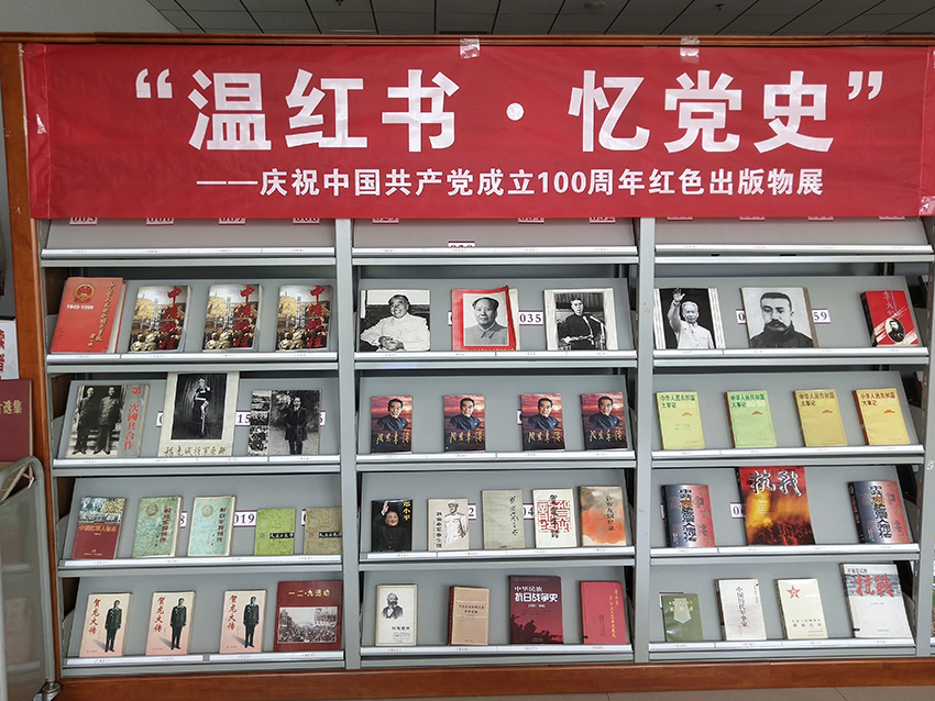 为迎接党的百年华诞,激发广大读者知党、爱党的热情,图书馆充分利用馆藏资源优势,在阅览室举办了“温红书?忆党史——庆祝中国共产党成立100周年红色出版物展”,于“七一”党的生日即将来临之际,献礼建党100周年。