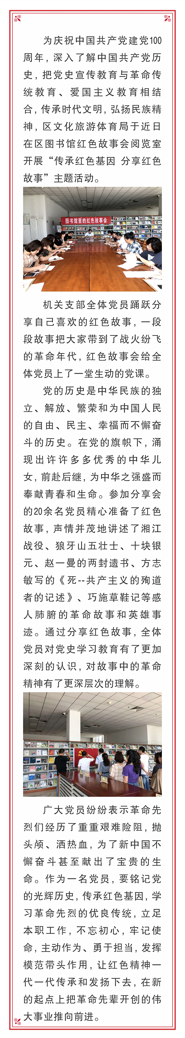 东丽区文化旅游体育局组织“传承红色基因 分享红色故事”主题活动
