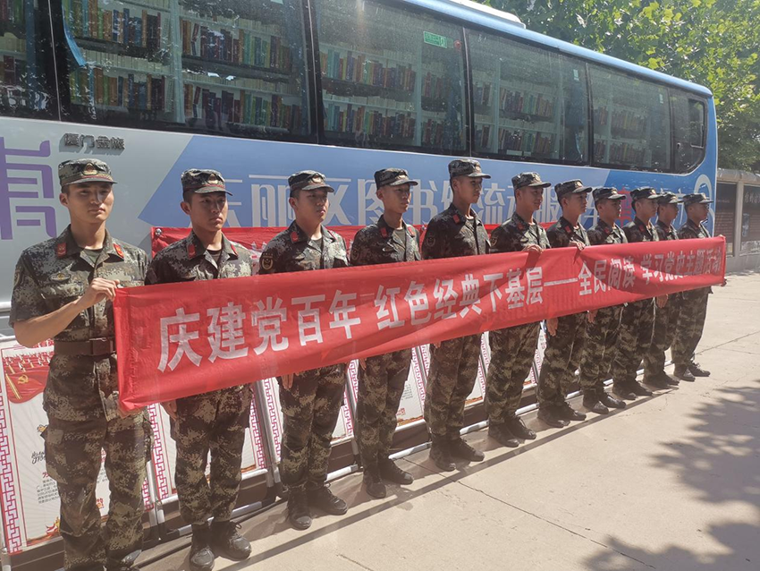 6月16日,东丽区图书馆流动服务车开进机场警卫连。
