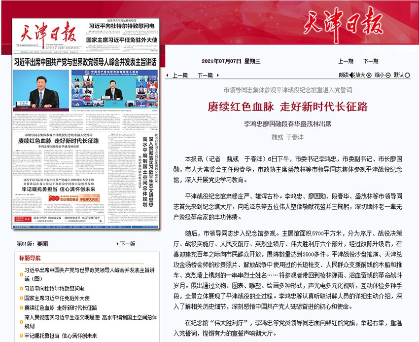 市领导同志集体参观平津战役纪念馆重温入党誓词